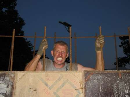 Brandon sets the first tower leg.