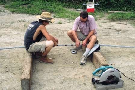 Brandon and Gabe check alignment.