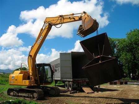 50 Meter boom truck spans the creek.