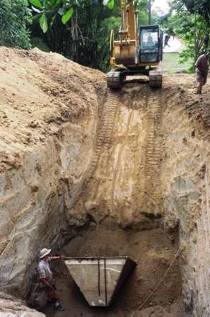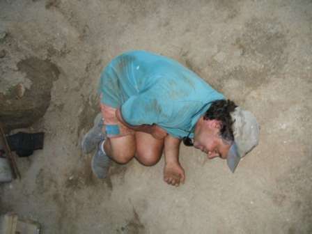 Austin excavates holes for the earth anchors.