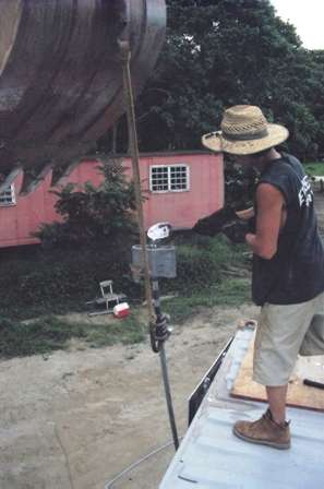 Brandon positions an earth anchor.