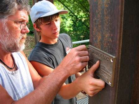 Carroll and Austin install the plaque. |
